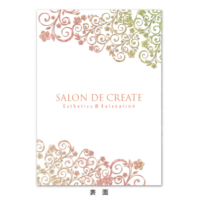 透明感のある花柄のレリーフで仕上げたチラシデザイン。色調を控えめにしたシンプルなデザインです。ライバル店に差をつけて売上をUPするデザインチラシ。文章・写真を入れてレイアウトします。用紙はコート110kg。発送目安はデザイン決定後7営業日です。